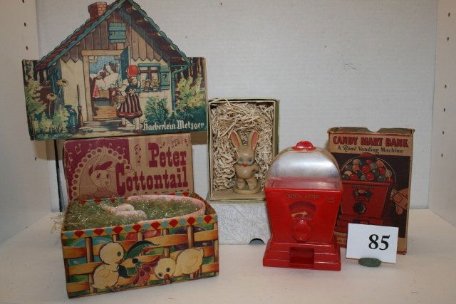 Toy LotFeb 21, 2026Lot Vintage Christmas DecorationsMar 07, 2026Lot of Seven Hand Painted Wood & Paper Mache Boxes3 days LeftENAMEL LOT OF TRINKET BOXES PILLBOXES INCL. HEREND, LIMOGES, NEIMAN MARCUSFeb 21, 2026LOT OF TALC / INCENSE TINSFeb 26, 2026Early West Germany Paper Mache Pixies, Elves and Pink Glass Shiny Brite Bulbs, Singing Bird OrnamentMar 16, 2026Collection Antique & Vintage Games ++Feb 28, 2026Vintage Hard Plastic Light Up Santa's & SnowmenMar 07, 2026Smoking Volkswagen in Box & 5 Other VW VehiclesGroup of miscellaneous vintage toys, banks, and souvenirs. ...6 days LeftGroup of Schmid Beatrix Potter Musical Collectibles and MoreMar 07, 2026COLLECTION OF FOURTEEN TAPE MEASURES.6 days LeftCOLLECTION OF 6: COUNTRY STORE SEED BOXES W/ LIDS6 days LeftGroup of Assorted AmericanaMar 07, 2026Group of Assorted Holiday ItemsMar 07, 2026Group of Assorted Disney/Raggedy Ann Items17 hrs Left