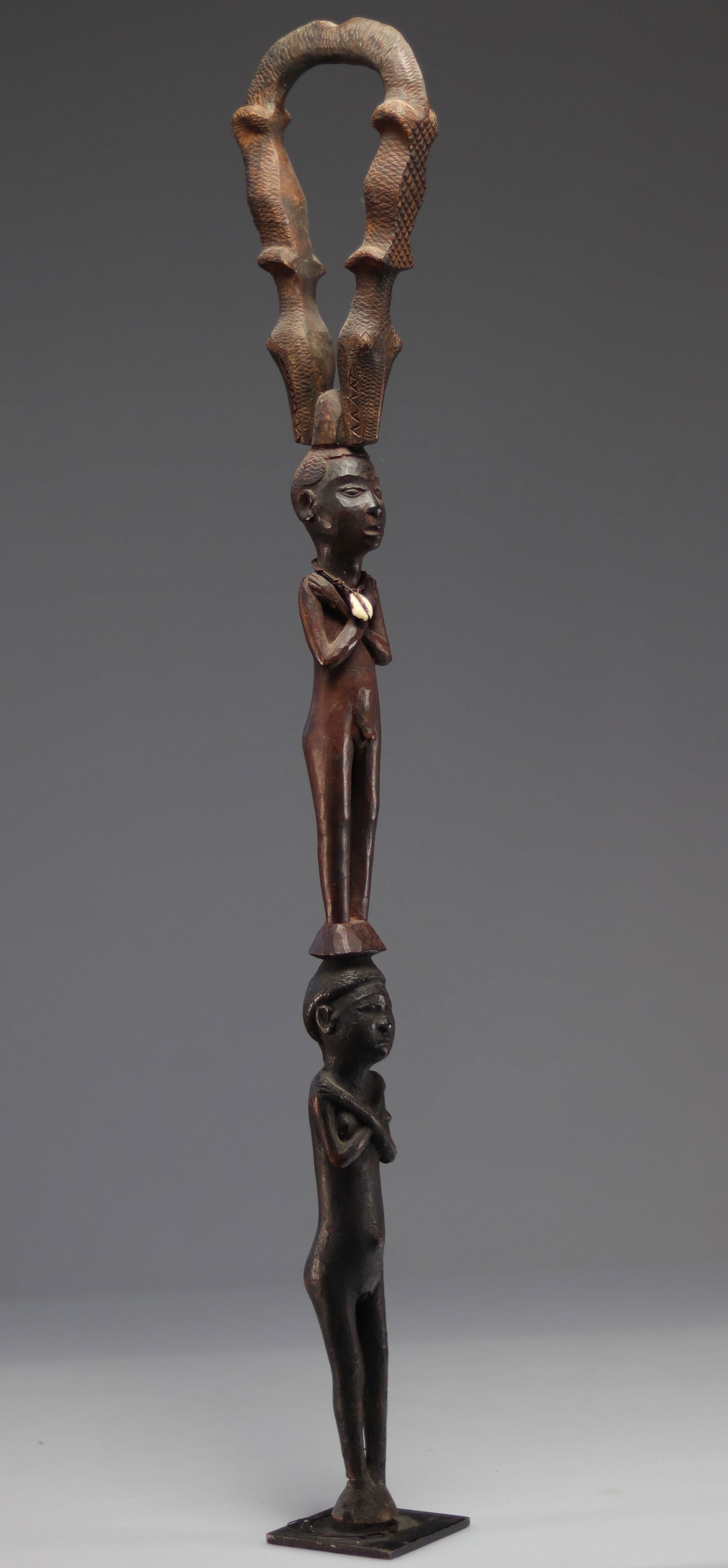 Cane carved with 2 figures, Congo