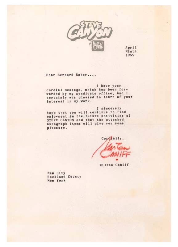 Caniff, Milton American Cartoonist Signed Note