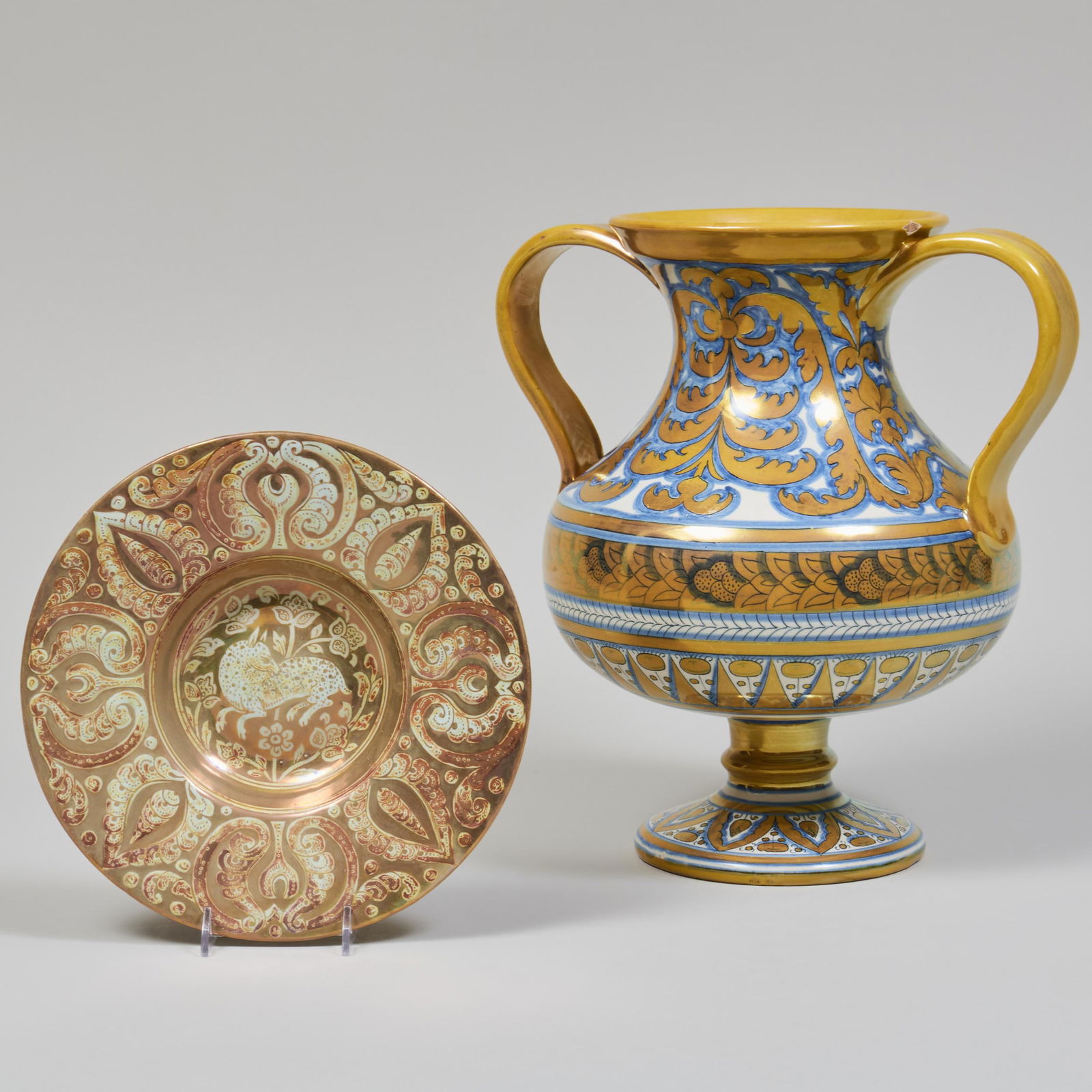 Cantagalli Lusterware Vase and a Dish