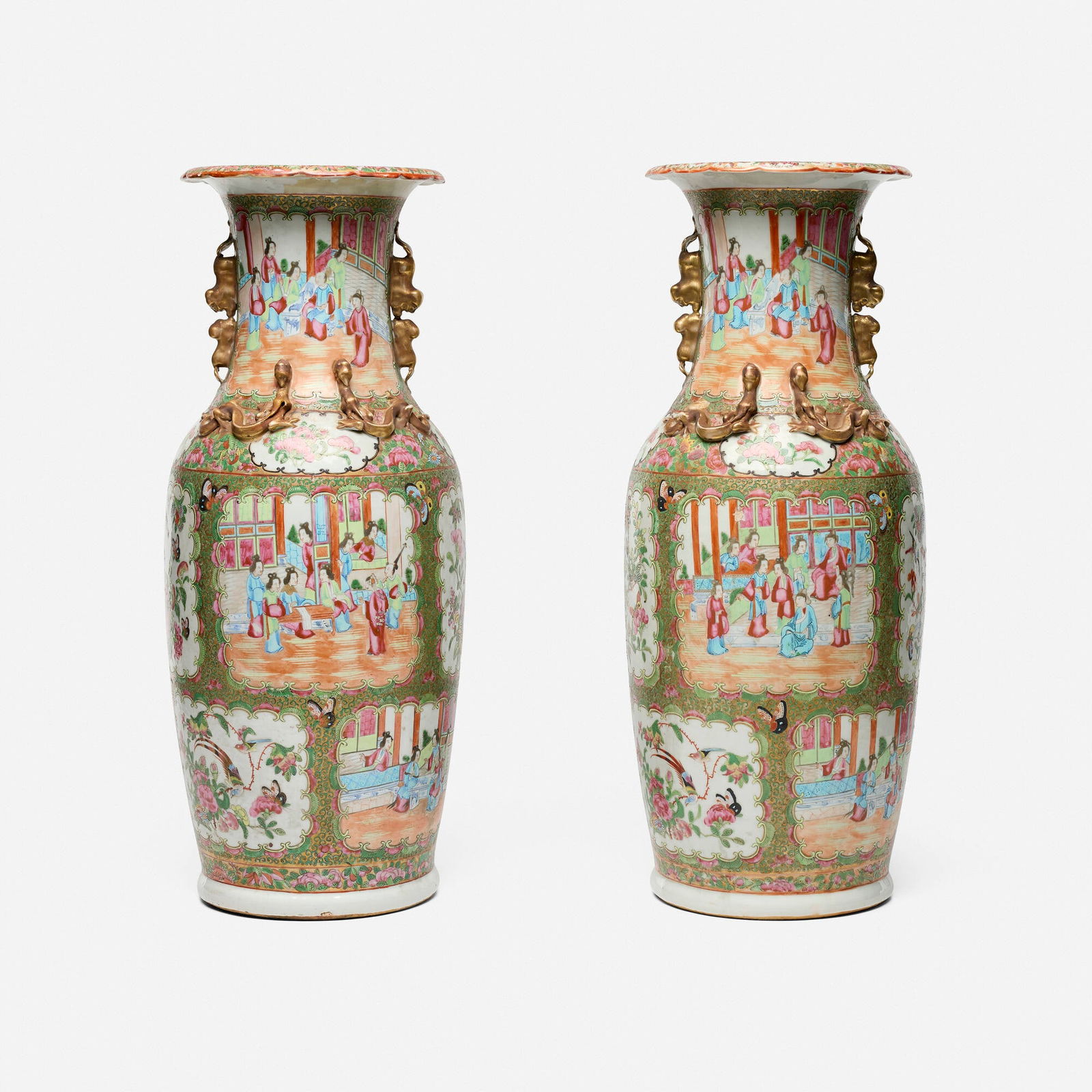 Canton, Rose Medallion vases, pair