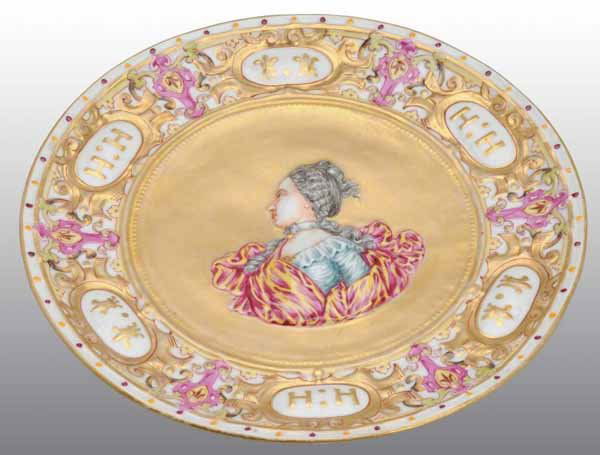 Capi-De-Monte Gilded Plate Featuring Lady.