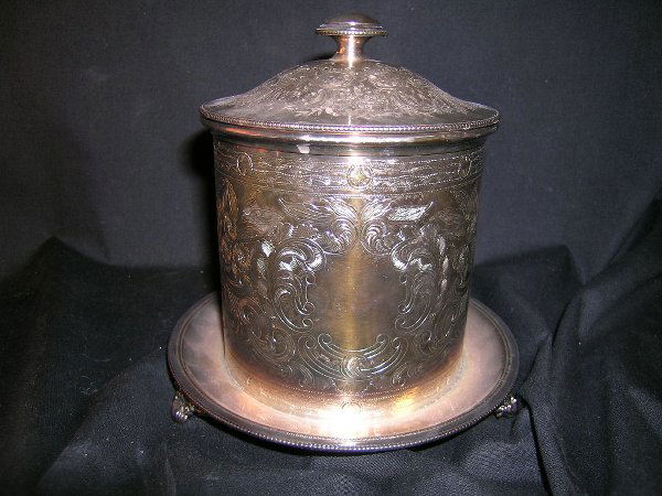CAPITAL SILVER PLATED ETCHED BISCUIT JAR