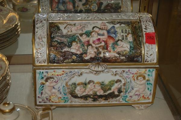 ENAMEL LOT OF TRINKET BOXES PILLBOXES INCL. HEREND, LIMOGES, NEIMAN MARCUS2 days Left(5) JAPANESE BLACK LACQUER PAINTED TABLE BOXES2 days LeftCapodimonte Musical Lipstick CarouselFeb 28, 2026A ROCOCO STYLE PORCELAIN BOX, 19TH/20TH CENTURY,2 days LeftComb And Brush Holder, Wave Crest Banner MarkMar 21, 2026Model of a brass etagereFeb 26, 2026Antique Porcelain Dresser Box with Relief Decoration9 hrs LeftVINTAGE CAPODIMONTE ARDALT ITALIAN TRINKET BOXMar 08, 2026A GOLD-MOUNTED MEISSEN PORCELAIN DOUBLE SNUFF-BOX AND COVERS CIRCA 1745-17507 hrs LeftVintage courting scene petit point needlepoint large purse bagMar 01, 2026Vintage Chinese Decorative Carved Jade & Soap Stone Jewelry BoxFeb 26, 2026Rosewood inlaid with shell large official box, treasure box, storage box.Mar 06, 2026Fine Serves Porcelain Gilt Bronze Jewelry Box/ casket by Lucien-françois PenetMar 08, 2026Chinese Hard Stone Carvings & Wood Inlaid MOP Box2 days LeftLarge Sevres Style BoxFeb 26, 2026An Antique Chinese Box/Stand3 days Left