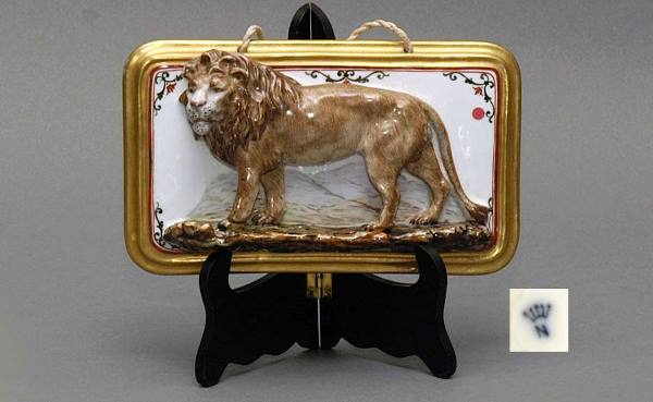 Capodimonte Bas-Relief Porcelain Lion Plaque