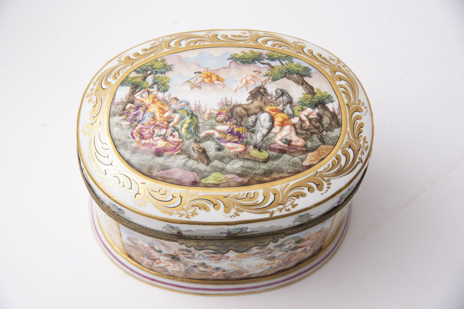 Lot of Four French Enameled Table Boxes8 hrs LeftCapodimonte Hand-Painted Porcelain Box with Cherubs, Crown N MarkFeb 15, 2026French Sevres Style Porcelain BoxFeb 26, 2026A GOLD-MOUNTED GERMAN PORCELAIN SNUFF-BOX AND COVER 19TH CENTURY, FAINT BLUE CROSSED SWORDS MARK TOFeb 19, 2026A GOLD-MOUNTED MEISSEN STYLE PORCELAIN SNUFF-BOX AND COVER 19TH CENTURY, BLUE CROSSED SWORDS ANDFeb 19, 2026A GOLD-MOUNTED MEISSEN PORCELAIN OVAL SNUFF-BOX AND COVER 19TH CENTURYFeb 19, 2026A GOLD-MOUNTED GERMAN PORCELAIN CIRCULAR SNUFF-BOX AND COVER THIRD QUARTER 18TH CENTURY, PROBABLYFeb 19, 2026A GOLD AND SILVER MOUNTED CONTINENTAL PORCELAIN OVAL SNUFF-BOX AND COVER 19TH CENTURYFeb 19, 2026Sevres Porcelain Jewelry Box H: 4" W: 10" x D: 5.4" w/ Cherubs Scene7 days LeftA GOLD-MOUNTED GERMAN PORCELAIN RECTANGULAR SNUFF-BOX AND COVER CIRCA 1770-1775, PROBABLY BERLINFeb 19, 2026A GOLD-MOUNTED GERMAN PORCELAIN RECTANGULAR SNUFF-BOX AND COVER CIRCA 1750Feb 19, 202619TH C. ORMOLU JEWELLERY BOX14 hrs Left19th C. Royal Vienna Jewelry Box5 days LeftA Capodimonte Trinket BoxFeb 15, 2026French 19th Century Sevres Porcelain BoxFeb 15, 2026Sevres Porcelain Jewelry Box w/ Romantic Scene H: 4" W: 8" x D: 4"7 days Left