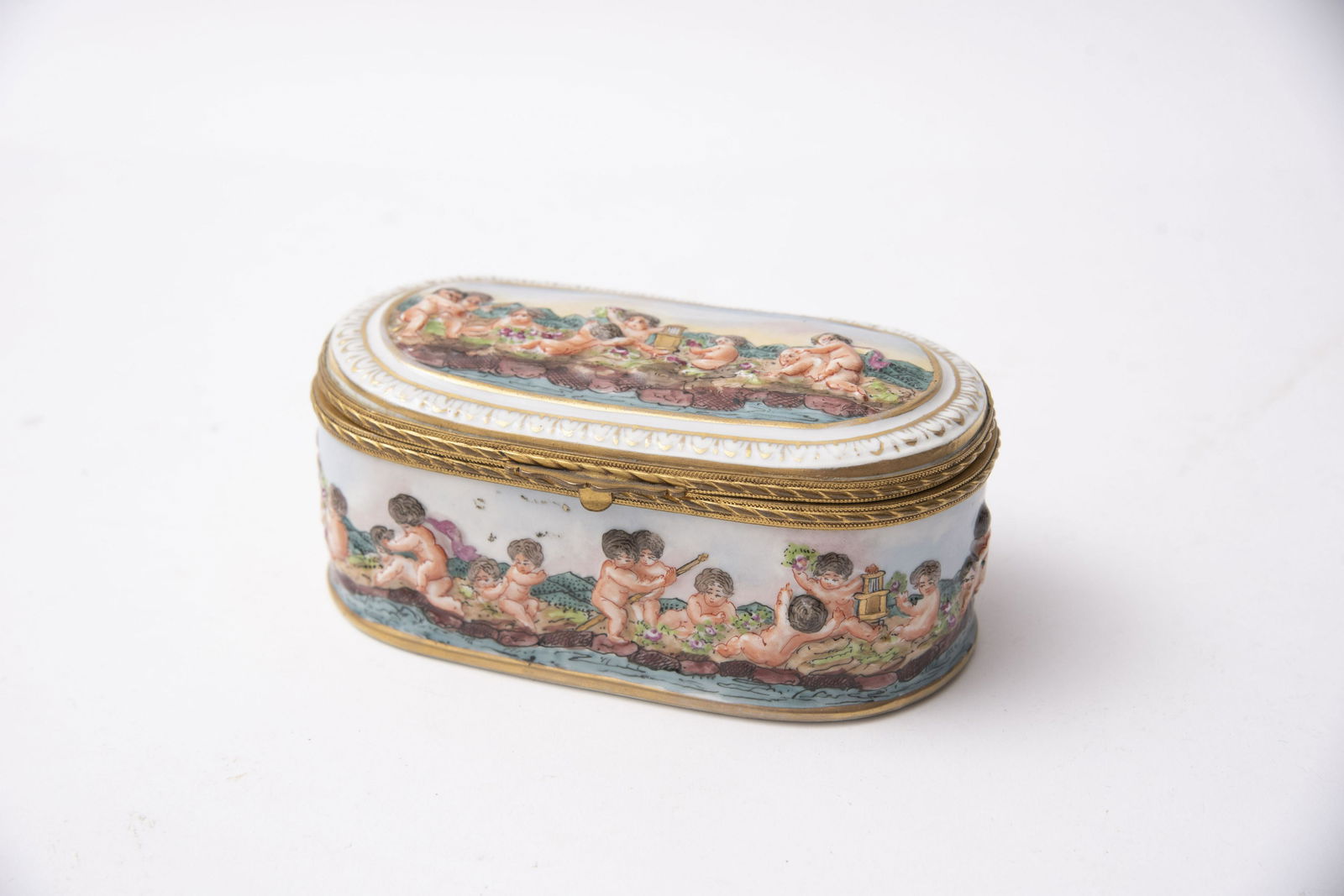 Capodimonte Hand-Painted Porcelain Box with Cherubs, Crown N MarkFeb 15, 2026A LARGE ITALIAN CAPODIMONTE PORCELAIN HINGED BOX, CIRCA 1900Feb 15, 2026A Capodimonte Trinket BoxFeb 15, 2026Vintage Capodimonte Box8 hrs LeftSevres Porcelain Jewelry Box H: 4" W: 10" x D: 5.4" w/ Cherubs Scene6 days Left19th C. Sevres Porcelain Jewelry Box5 days LeftMagnificent Marseille porcelain jewelry box with gallant scene, 19th century4 days LeftFrench Sevres Porcelain & Bronze Box5 days LeftLarge 19th C. Sevres Porcelain Jewelry Box5 days LeftA GOLD-MOUNTED GERMAN PORCELAIN SNUFF-BOX AND COVER 19TH CENTURY, FAINT BLUE CROSSED SWORDS MARK TOFeb 19, 2026DECORATIVE VICTORIAN ART NOUVEAU PORCELAIN VANITY BOXFeb 22, 2026A GOLD-MOUNTED GERMAN PORCELAIN RECTANGULAR SNUFF-BOX AND COVER CIRCA 1770-1775, PROBABLY BERLINFeb 19, 2026Sevres French Porcelain Jewelry Box5 days LeftA GILT-METAL MOUNTED GERMAN PORCELAIN SNUFF-BOX AND COVER SECOND HALF 18TH CENTURY, POSSIBLY WÜFeb 19, 202619th C. Royal Vienna Jewelry Box5 days LeftA GOLD AND SILVER MOUNTED CONTINENTAL PORCELAIN OVAL SNUFF-BOX AND COVER 19TH CENTURYFeb 19, 2026