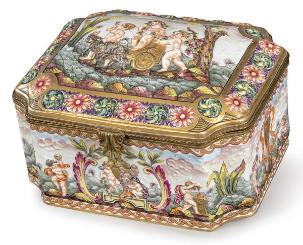 Capodimonte enamelled porcelain box with representation