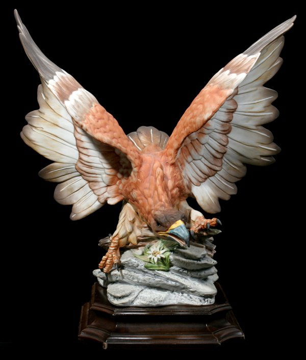 CAPODIMONTE PORCELAIN EAGLE, H 15", W 14"