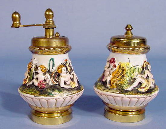 Capodimonte Relief Décor. Pepper Mill & Shaker