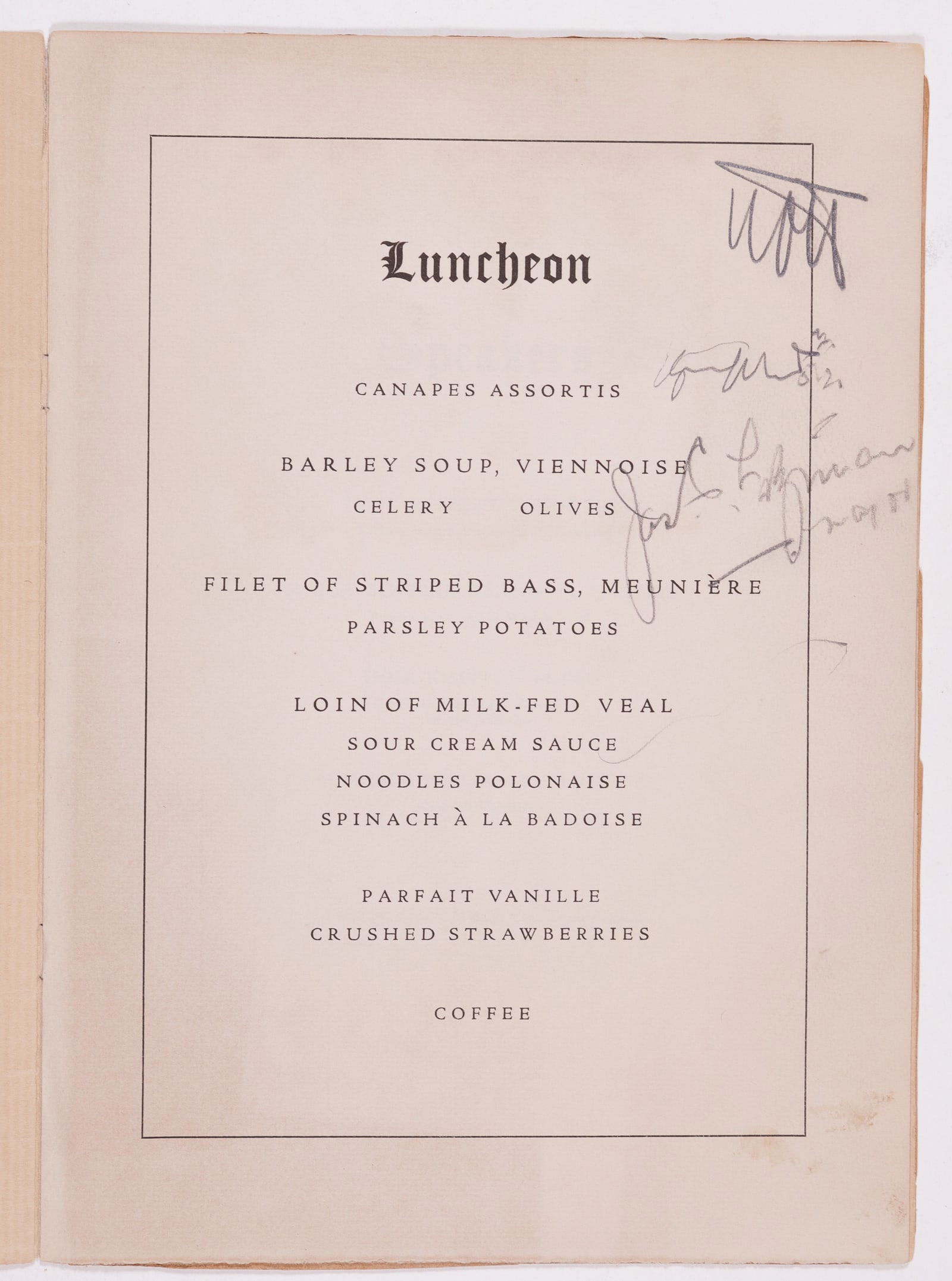 CAPTAIN HERMANN KOHL TESTIMONIAL LUNCHEON SIGNED MENU