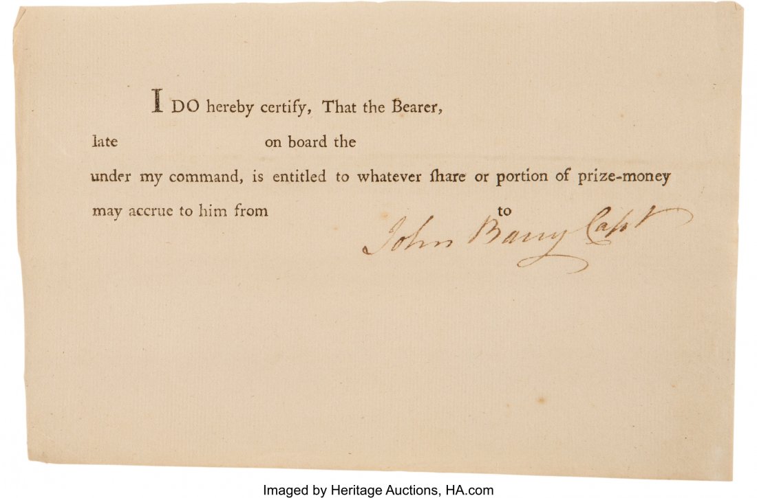 Captain John Barry Blank Payment Certificate Sig