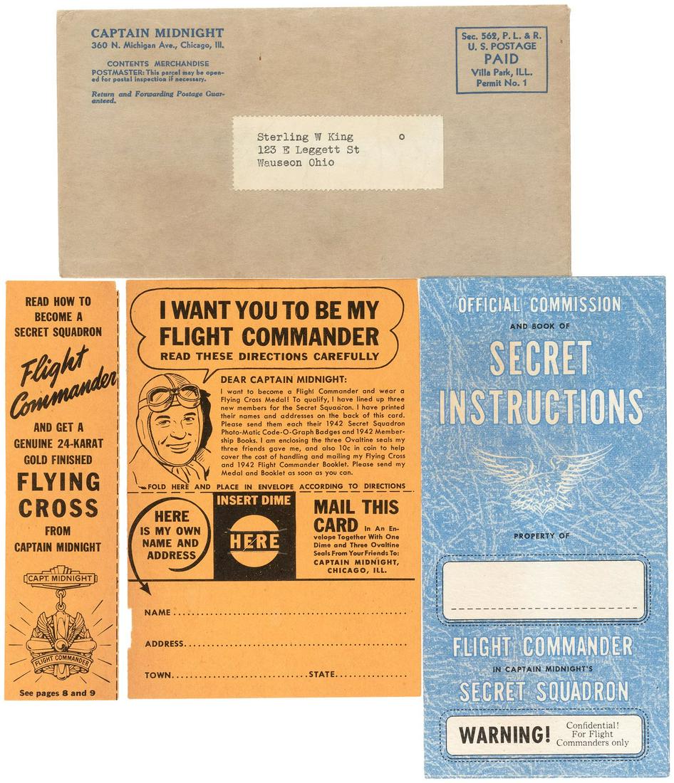 CAPTAIN MIDNIGHT "FLIGHT COMMANDER" BADGE & PAPERS.