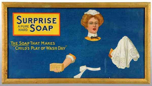 Cardboard Surprise Soap Sign.