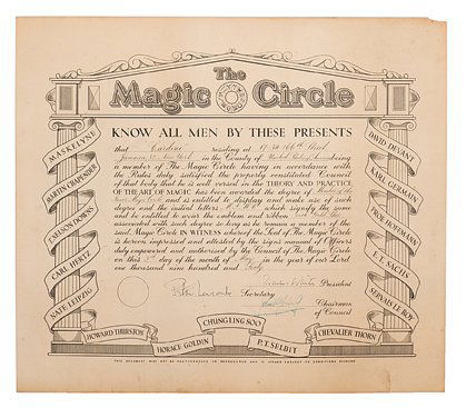 Cardini’s Inner Magic Circle membership certificate.