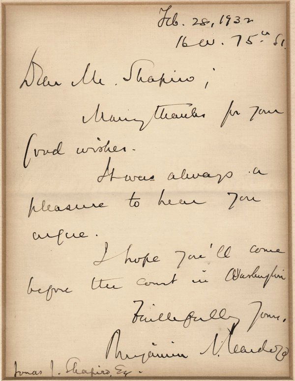 CARDOZO, BENJAMIN - ALS 1932 re SCOTUS appt