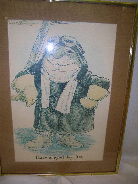CARICATURE FLYING ACE PILOT SIGNED LITHOGRAPH