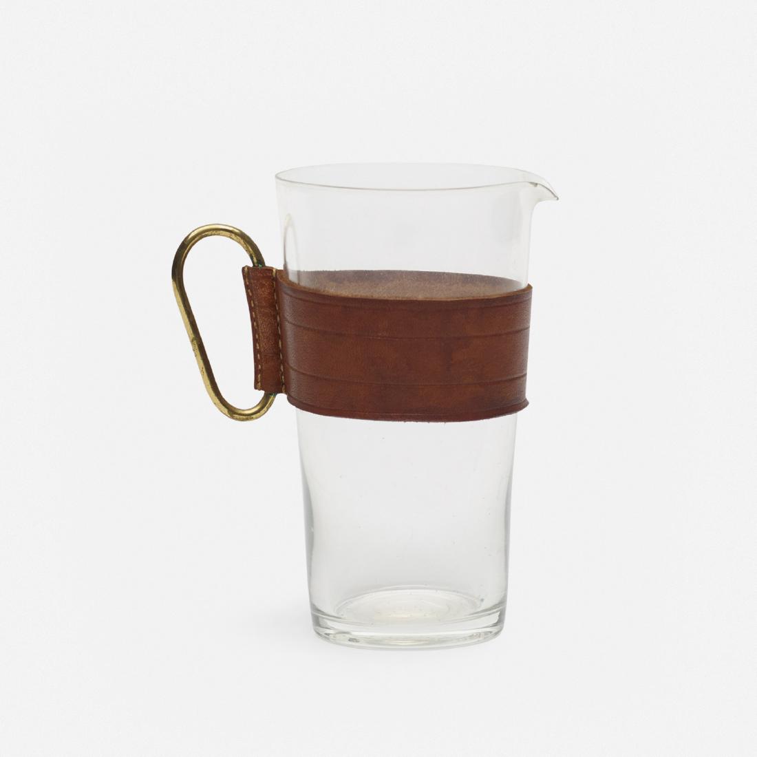 SoldCarl Aubock III, Model 3749 PitcherAustria, c. 1953 glass, leather, brass 11.5” x 5.25” Large glass pitcher by Carl Aubock III, model 3749, with leather wrap and brass handle. Tags: modern, modernist, mid century, design, bSee Sold Price