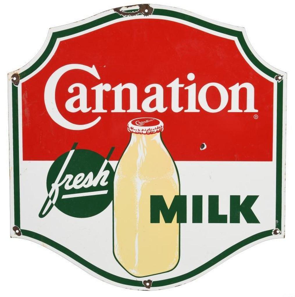 Carnation Evaporated Milk Tin SignMar 23, 2026Carnation Fresh Vitamin D Homogenized Embossed Single Sided Tin SignMar 21, 2026Borden's Milk And Cream Painted Metal Flange Sign W/ Elsie GraphicMar 26, 2026Conquest Carfor OIL w/Image Porcelain Sign (TAC)Mar 25, 2026Texaco Gasoline Motor Oil 42" SSP SignMar 21, 2026California Dairy Industries "Dairy Of Merit" Die-Cut SignMar 26, 2026Coca-Cola Fountain Service Porcelain SignMar 25, 202630" Red Crown Gasoline GM Ethyl Porcelain Sign (TAC)Mar 25, 2026California Dairy Industries "Dairy Of Merit" Double-Sided Porcelain Sign W/ Cow GraphicMar 26, 2026PIXY-PAK All Jersey Milk SST Advertising SignMar 21, 2026Sicomac Dairy Products Milk Ice Cream 3' DST SignMar 21, 2026Big Bear Finest Quality Ice Cream Single Sided Tin SignMar 20, 2026Republic Car Loading Single-Sided Porcelain SignMar 26, 2026Drink Coca Cola Enjoy That Refreshing New Feeling SST Sled SignMar 20, 2026Lactifer A Cooked Calf Meal w/Image Porcelain Sign (TAC)Mar 26, 2026We Use The De Laval Cream Separator SST AD SignMar 21, 2026