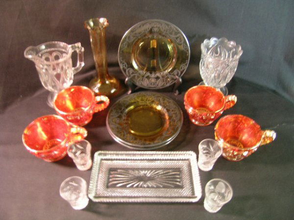 CARNIVAL PATTERN PRESSED CUT GLASS BOX LOT