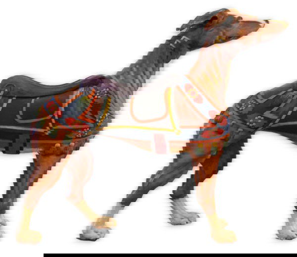 SoldANTIQUE JUMPER CAROUSEL HORSEA very good antique jumper carousel horse, American, circa 1910, possibly Charles I.D. Looff, hand-carved in cypress with a hollow body & separately carved head - turned slightly outwards with the manSee Sold Price