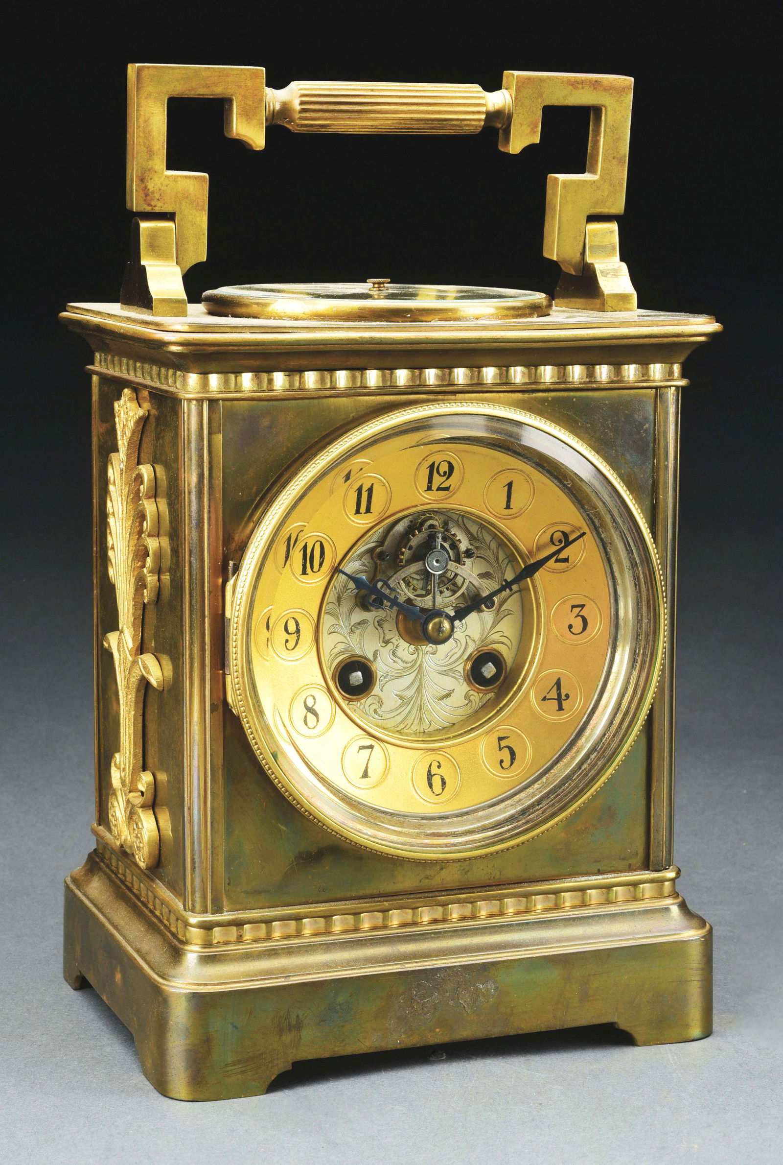 A VERY GOOD 19TH CENTURY FRENCH CHINESE MARKET ENAMELLED GILT BRONZE REPEATING CARRIAGE CLOCK the diA VERY GOOD 19TH CENTURY FRENCH CHINESE MARKET ENAMELLED GILT BRONZE REPEATING CARRIAGE CLOCK the dial signed L Vrard & Ci of Shanghai, beautifully painted with foliage and trailing vines, the borders