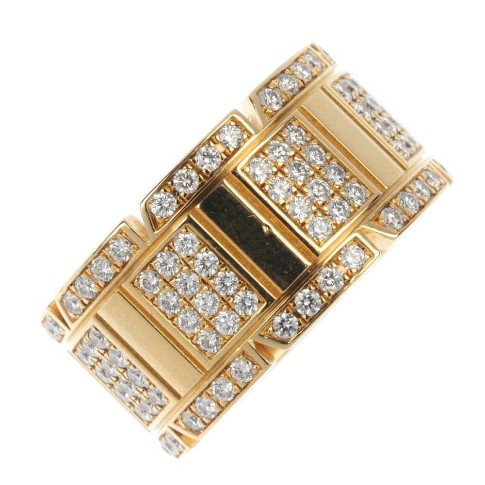Sold18k Cartier diamond wide band ring, 11.2 dwt18k Cartier diamond wide band ring, 11.2 dwt. Size: 8 Davids notes: This band is thick and solid, and has eight rows of four round E-F color full cut VS1 .02ct diamonds, for a total diamond weight ofSee Sold Price
