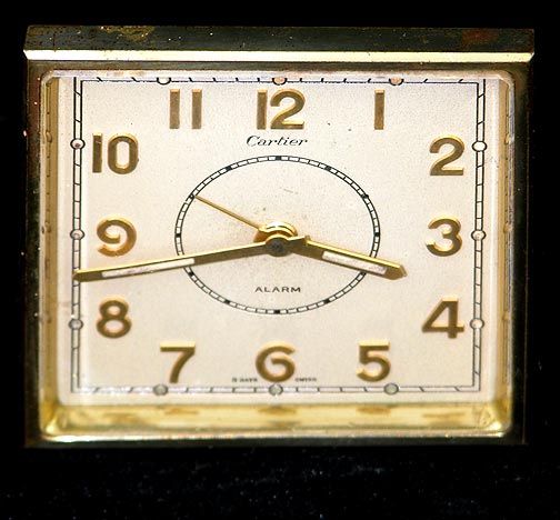 Vintage Cartier Paris Enamel Gold Plated Brass Manual Table Clock