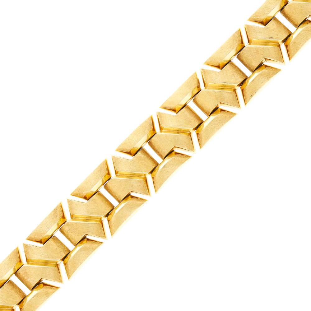 A 14K GOLD BRACELET18K Yellow Gold Bracelet by Cartier Maillon CollectionMar 19, 2026(18K) Cartier Link Bracelet Yellow Gold4 days LeftSHREVE, CRUMP, & LOW CO.: AN 18K GOLD BRACELETTIFFANY & CO.: A 14K GOLD BRACELET, CIRCA 1970s14K Gold BraceletMar 20, 2026TIFFANY & CO.: AN 18K GOLD AND DIAMOND 'SIGNATURE X' BRACELETCARTIER MYON PHANTELE BRACELETMar 21, 2026Men's Figaro Chain Bracelet 14K Yellow Gold, 8.25 Inches, 6 mm, 14.87 GramsGold BraceletMar 19, 2026CARTIER CRASH DE CARTIER FLEXIBLE MEDIUM MODEL BRACELETMar 28, 2026BRACELETVintage 1950s cuff bracelet, yellow gold; 41.88 g - 21 cmMar 29, 2026Harbor Diamonds 18K Yellow Gold Textured Link Bracelet 34.9g Contemporary Design2 days LeftCARTIER CLASH MEDIUM BANGLEMar 21, 2026TIFFANY & CO. T-CHAIN K18 YELLOW GOLD BRACELET5 days Left
