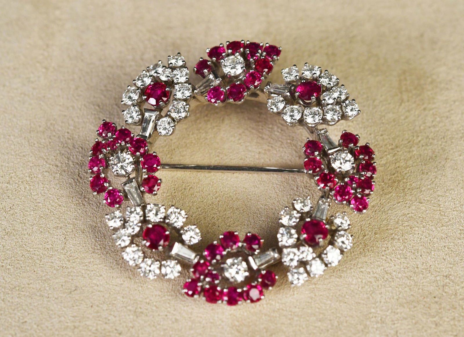 CARTIER RUBY AND DIAMOND PIN.