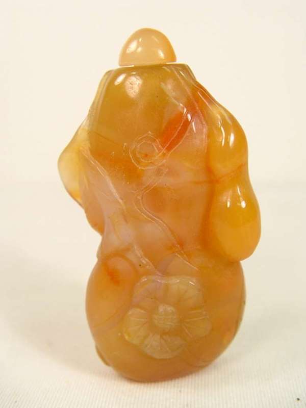 Carved Agate Floral Design Snuff Bottle.