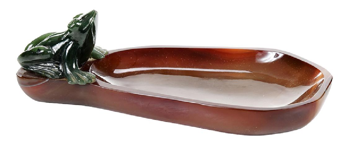 Carved Agate Tray With Jade Frog