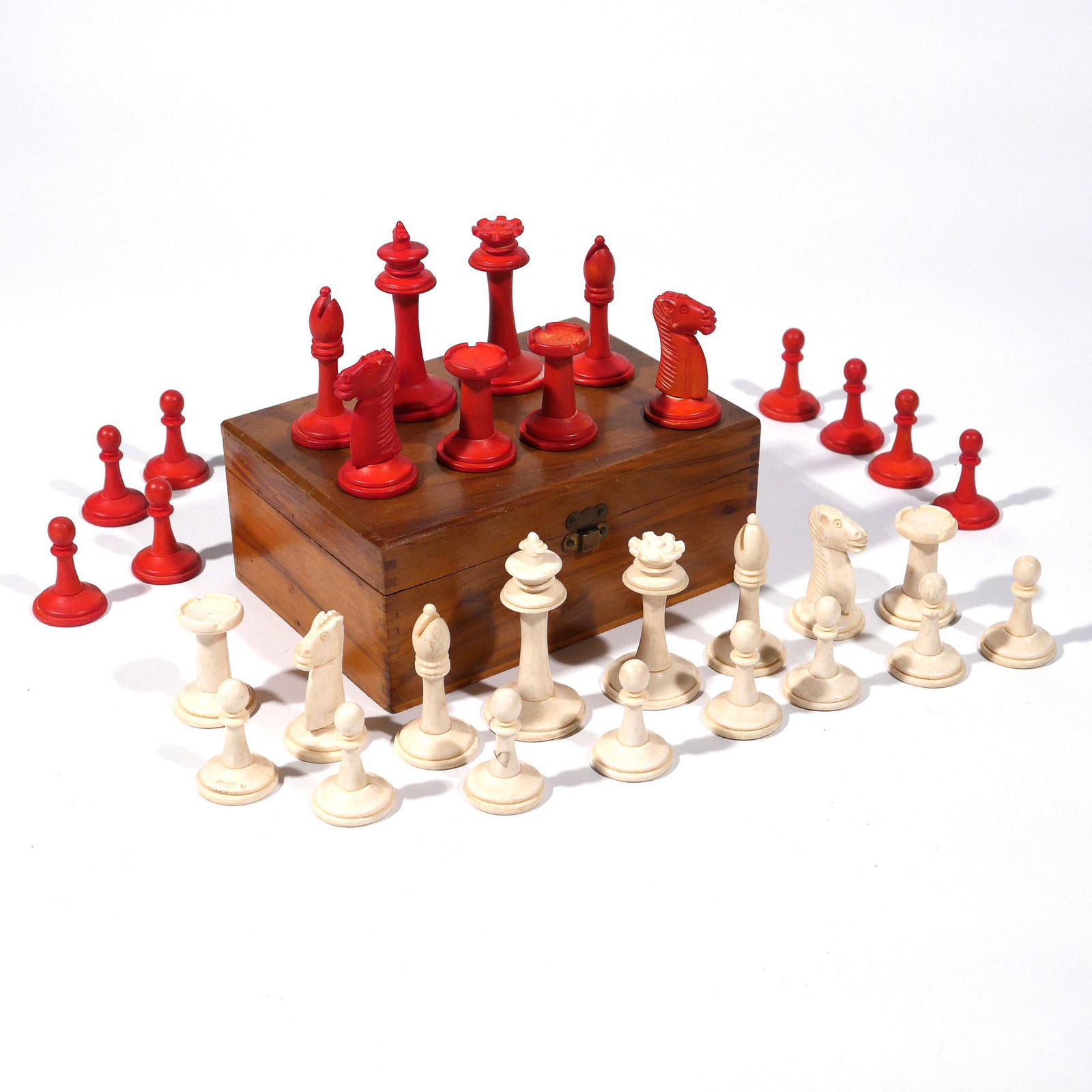 Carved & Stained Bone Boxed Chess Set