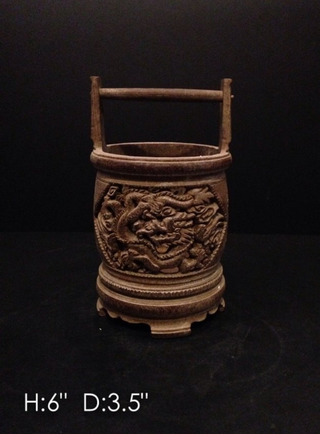 Carved bamboo basket with dragon