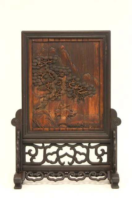 Carved bamboo scenic table screen