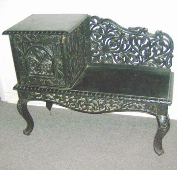 Carved Bench With Cabinet