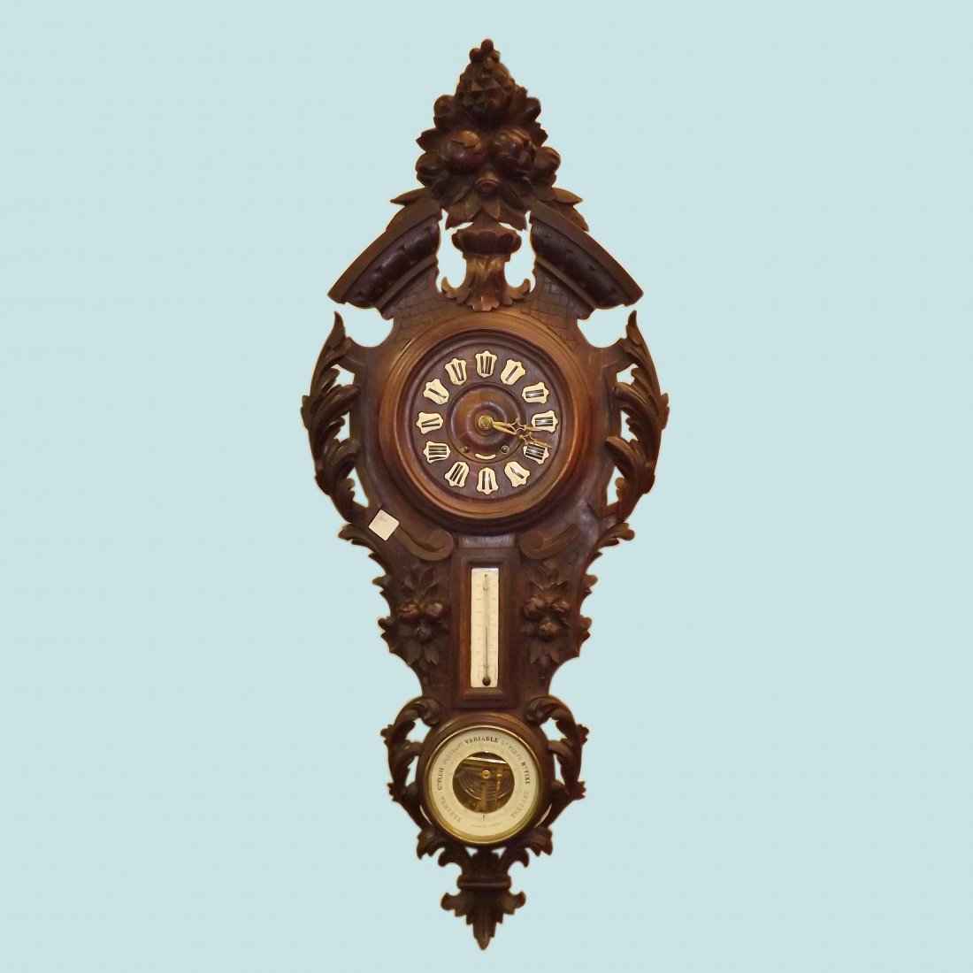Carved Black Forest Wall Clock with Barometer by J.
