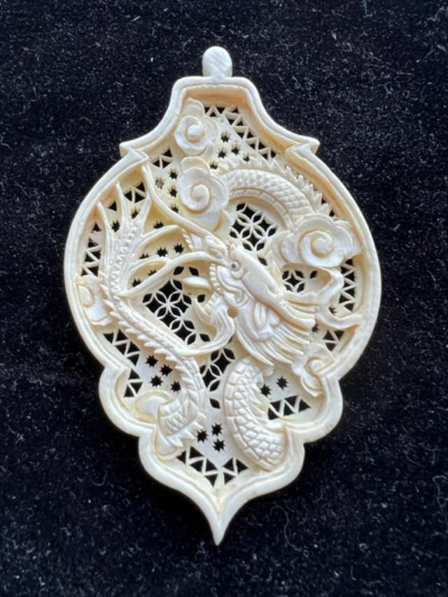 Carved Bone Dragon Pendant ca. 1880