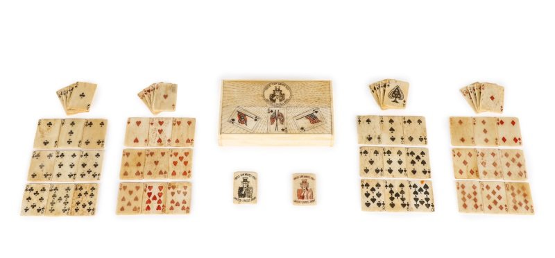 Carved Bone Miniature Playing Card Set, Uncle Sam