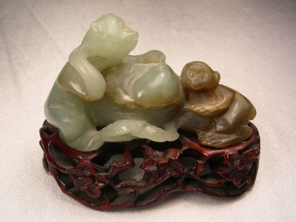 CARVED CHINESE FIGURAL GROUP JADE MONKEY MONKEYS