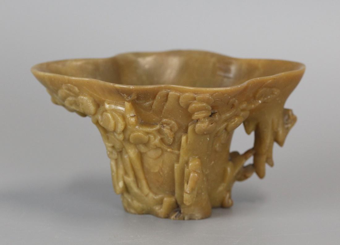 carved Chinese soapstone libation cup, 19th c.