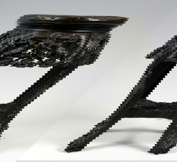 Carved Chinese Stool Marble Top