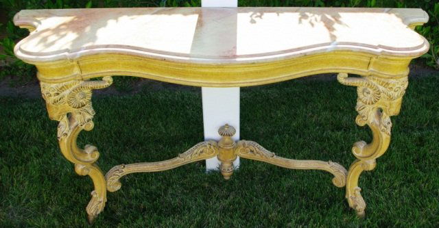 Neoclassical Style Console Table3 days LeftAn Italian Rococo Style Faux Bois Gilt Wood Coffee Table3 days LeftVintage French Louis XVI Style Demilune Console TableFrench Louis XV Period Marble-Top Console TableMar 08, 2026Handsome French Empire Style Carved & Gilt Marble Top Pier Table5 days LeftLouis XV Style Giltwood Console Table with Black Marble TopMar 07, 2026Gilt wood onyx top console table, onyx crackMar 02, 2026CARVED & GILDED MARBLE TOP CONSOLE TABLEMar 08, 2026French console table with faux marble top.20 hrs LeftAntique French marble top carved console in original distressed paintMar 08, 2026Vintage French Louis XIV Style Gilt Wood Marble Top Console Table4 days LeftA GILTWOOD AND PAINTED SATINWOOD DEMI-LUNE CONSOLE TABLE, IN THE MANNER OF THOMAS CHIPPENDALEPair of French Louis XV-style Marble Top Giltwood Consoles4 days LeftA MARBLE TOPPED CARVED WOOD AND GILT GESSO CENTRE TABLE, IN THE REGENCE STYLE, EARLY 19TH CENTURYVictorian Walnut Console Table with Marble TopMar 07, 2026LOUIS XV STYLE MARBLE TOP LOW TABLE OR BENCHMar 07, 2026