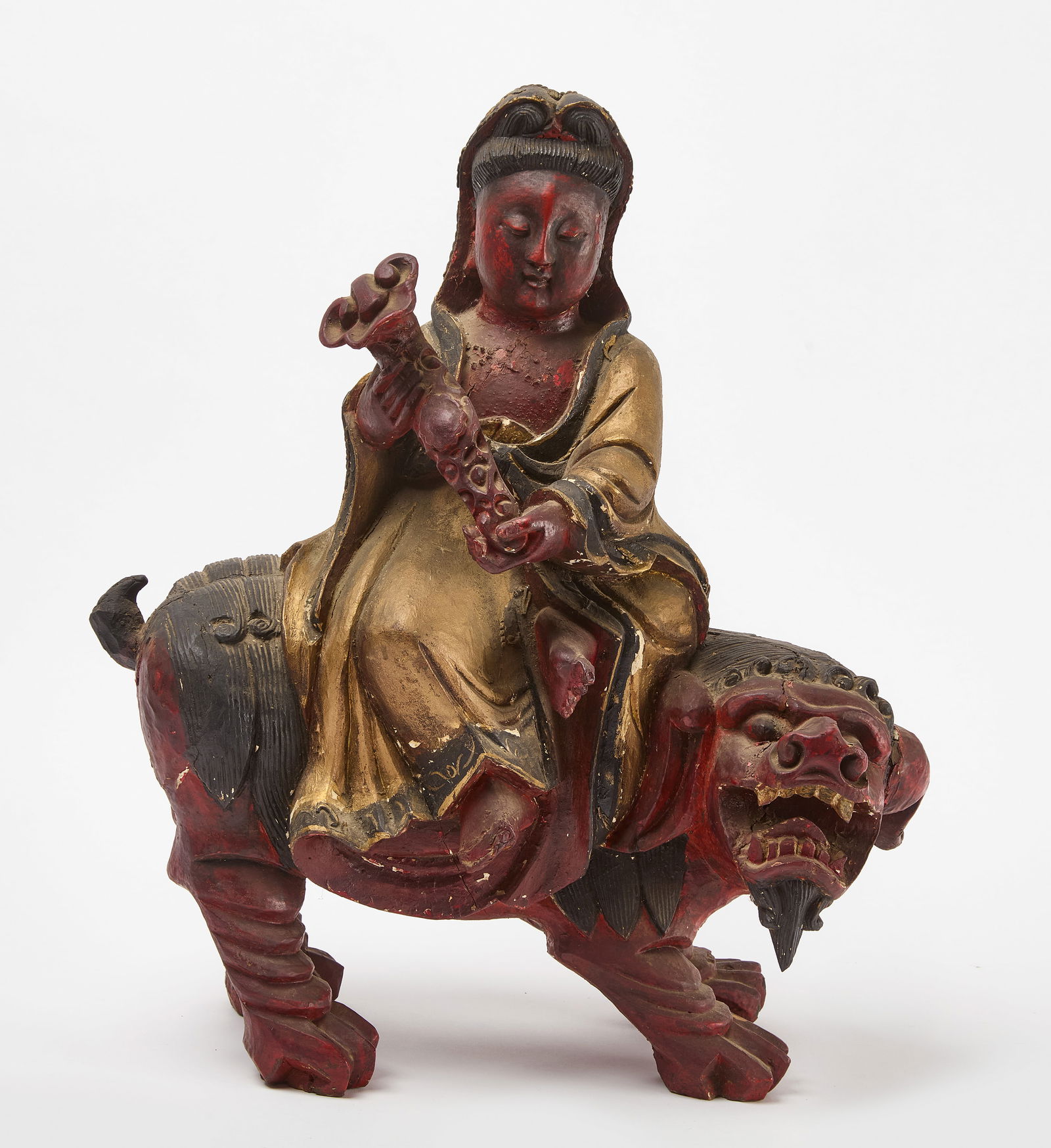 Carved Figure Buddha on Foo Dog