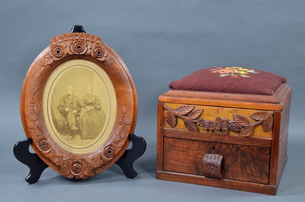 Carved Folk Art Sewing Box