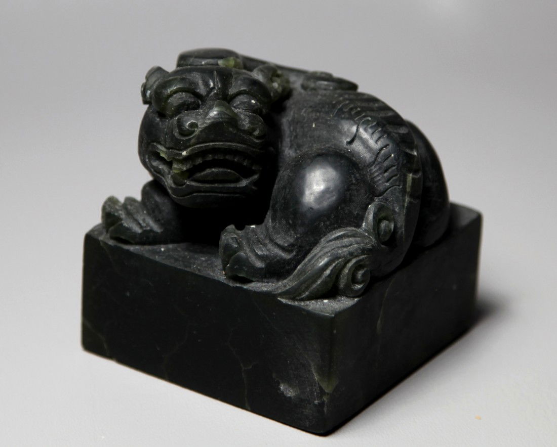 A HETIAN SPINACH GREEN JADE CARVED SEAL WITH DOUBLE-DRAGON FINIALTop Notch Collections4.4(56)$3,5003 days Left
