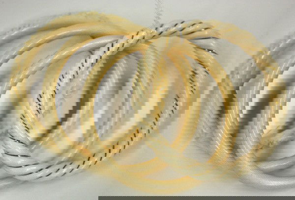 SoldBakelite lot of 8 yellow carved bangle braceletsBakelite lot of 8 yellow carved bangle braceletsSee Sold Price