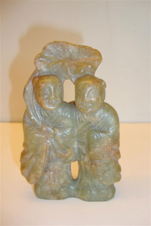 CARVED JADE DOUBLE FIGURE