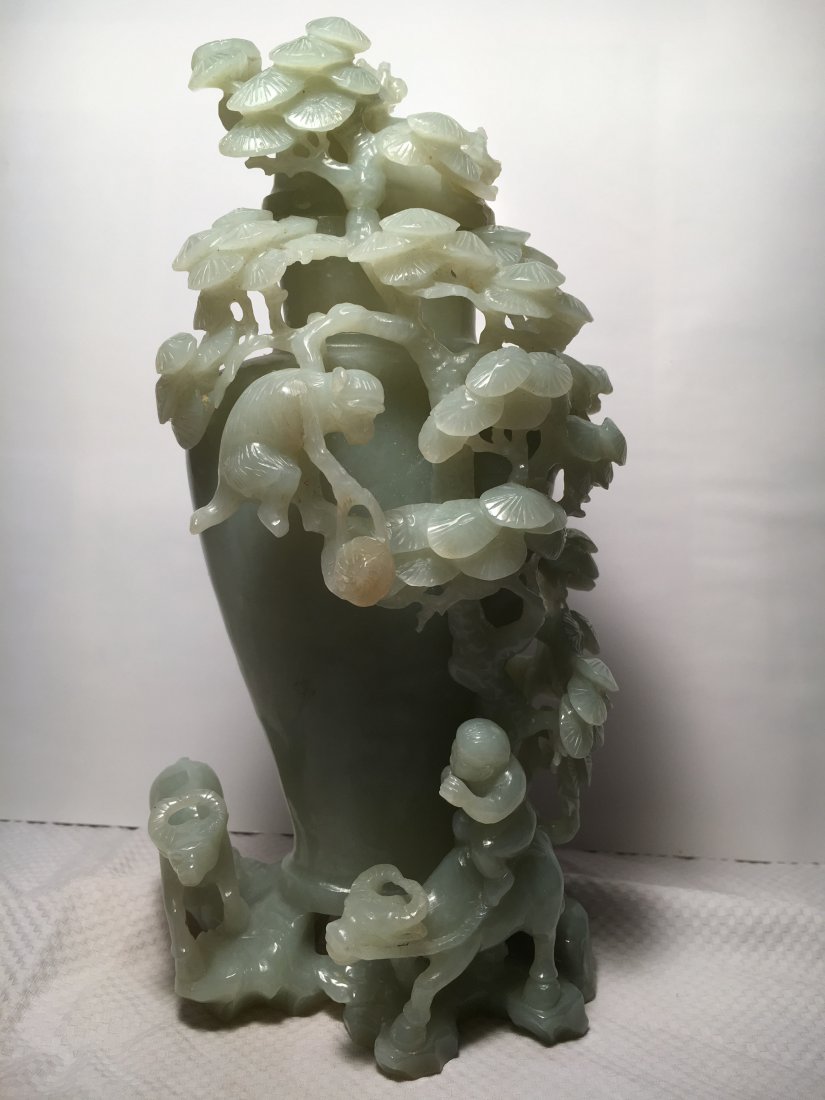 carved jade lidded vessel monkeys