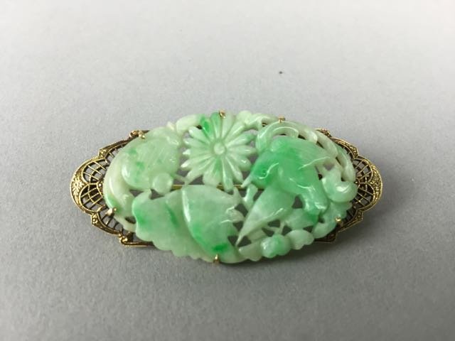 Stamped 14k antique Chinese jadeite jade and pearl gold broochLake Lanier Antiques LLC4.4(25)$1,3007 days Left
